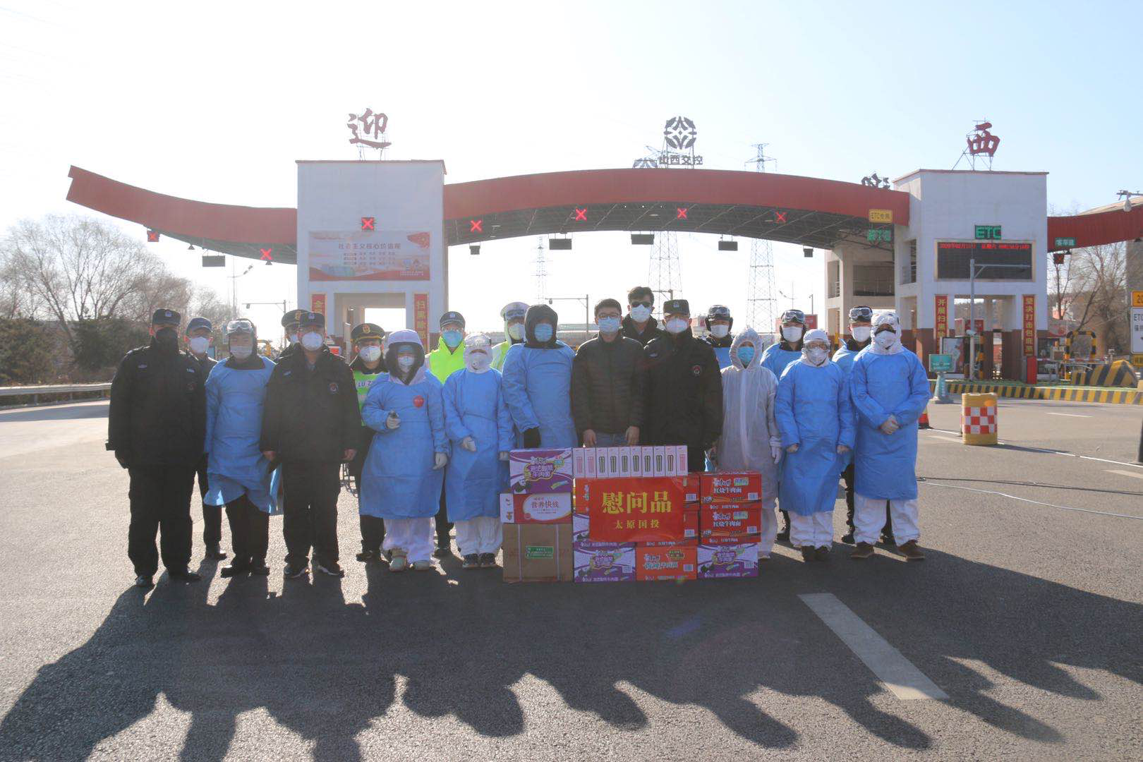 在迎西高速路收費口,楊柳同志代表公司向疫情防控卡點轄區(qū)公路、公安、交警、衛(wèi)健委和街辦等一線防疫工作人員進行慰問,并送上慰問物品。