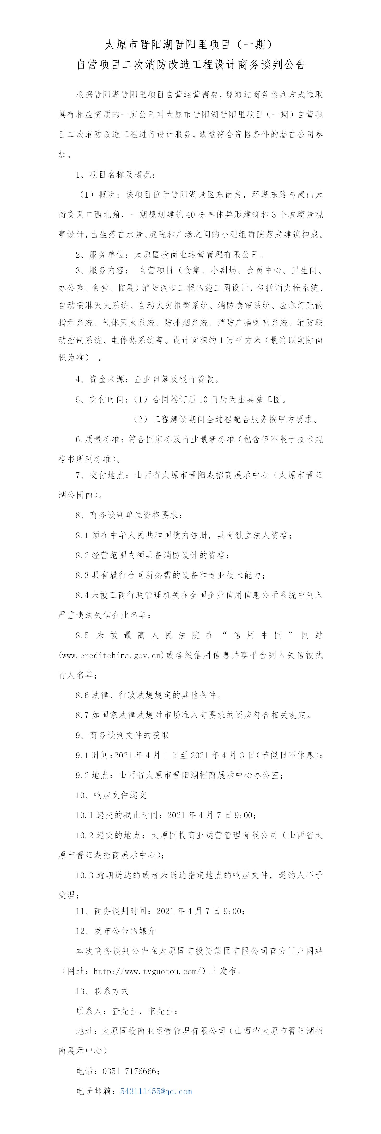晉陽(yáng)湖晉陽(yáng)里項(xiàng)目消防改造工程設(shè)計(jì)商務(wù)談判公告