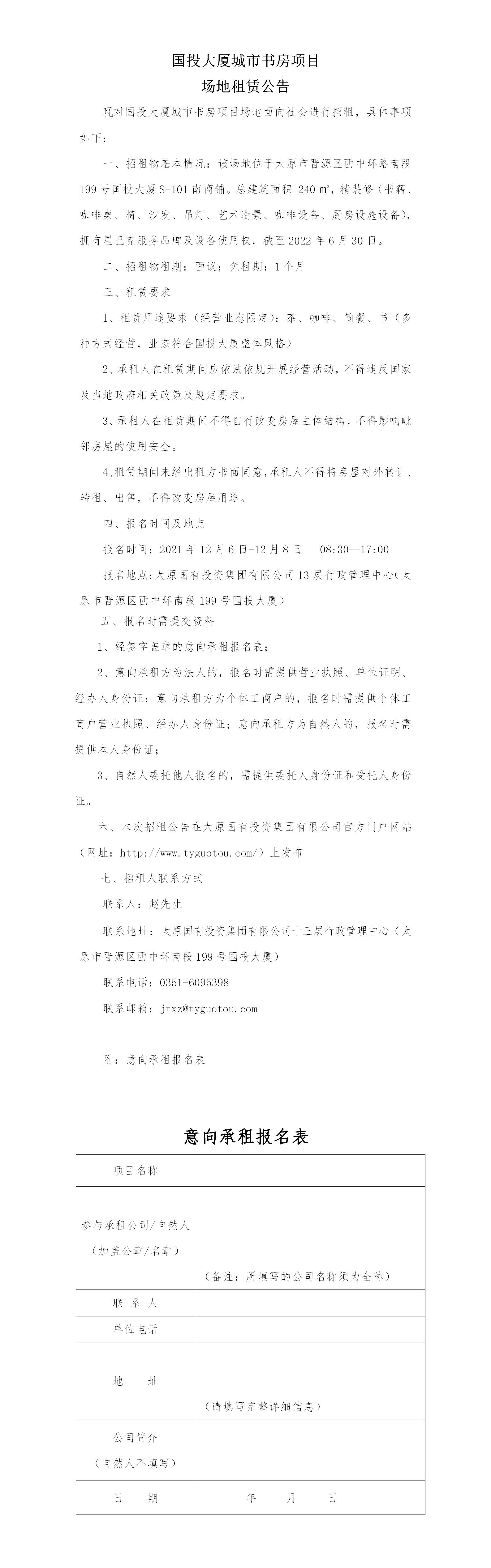國投大廈城市書房項目場地租賃公告