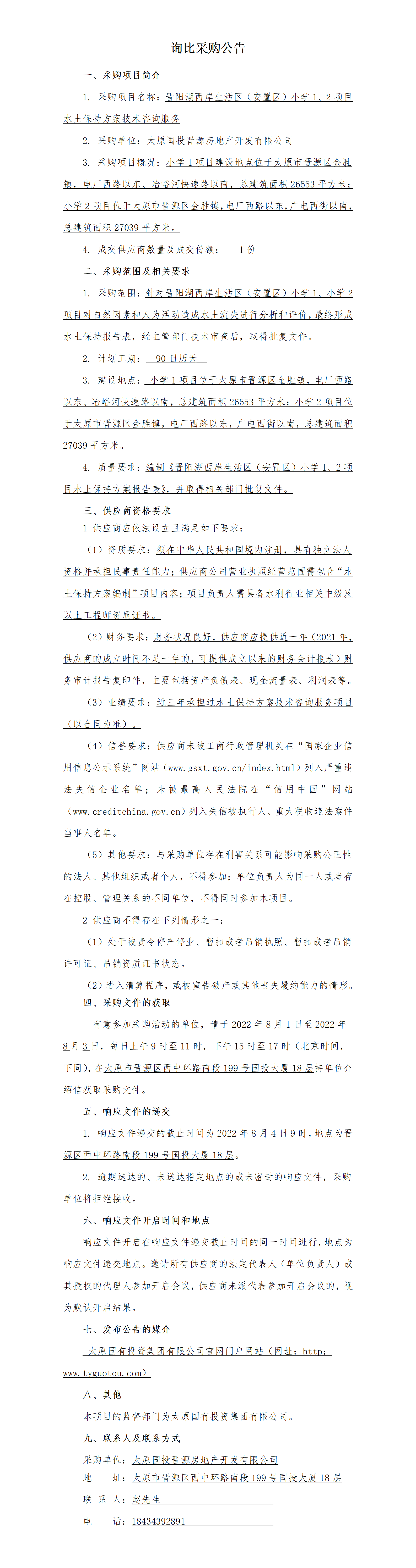 晉陽湖西岸生活區(qū)(安置區(qū))小學1、2項目水土保持方案技術(shù)咨詢服務詢比采購公告