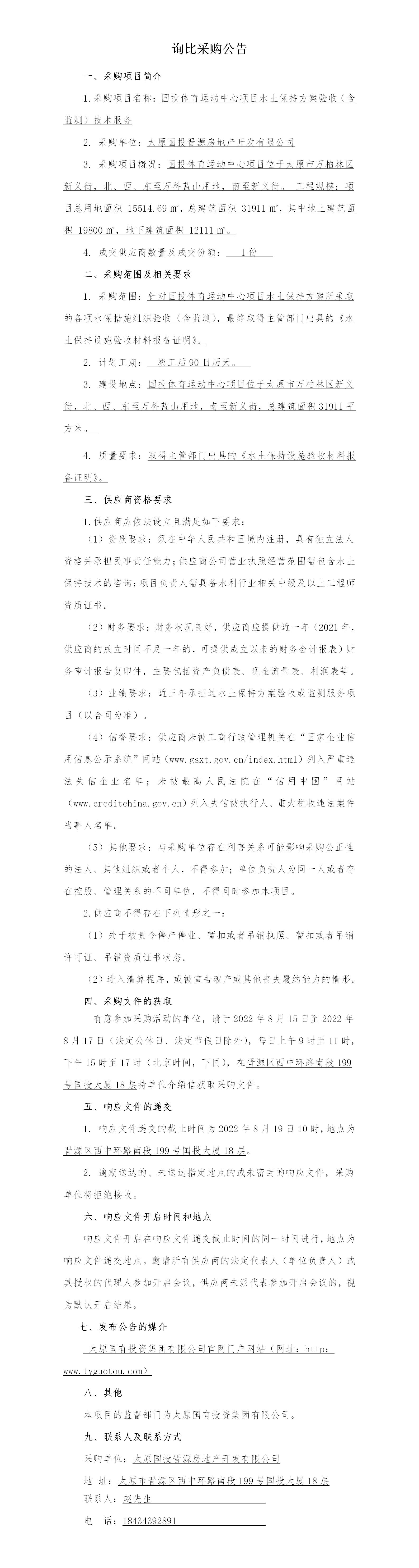 國投體育運(yùn)動中心項(xiàng)目水土保持方案驗(yàn)收(含監(jiān)測)技術(shù)服務(wù)詢比采購公告