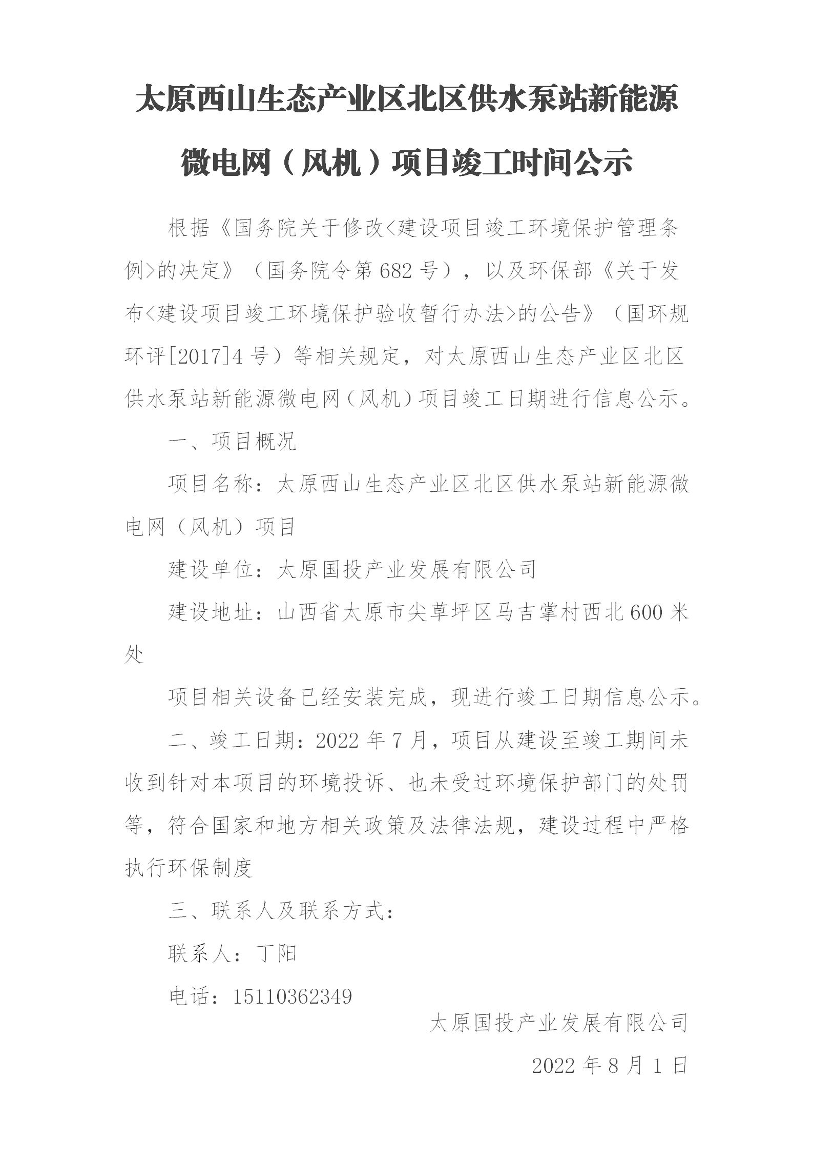 太原西山生態(tài)產(chǎn)業(yè)區(qū)北區(qū)供水泵站新能源微電網(wǎng)(風(fēng)機(jī))項(xiàng)目竣工公示
