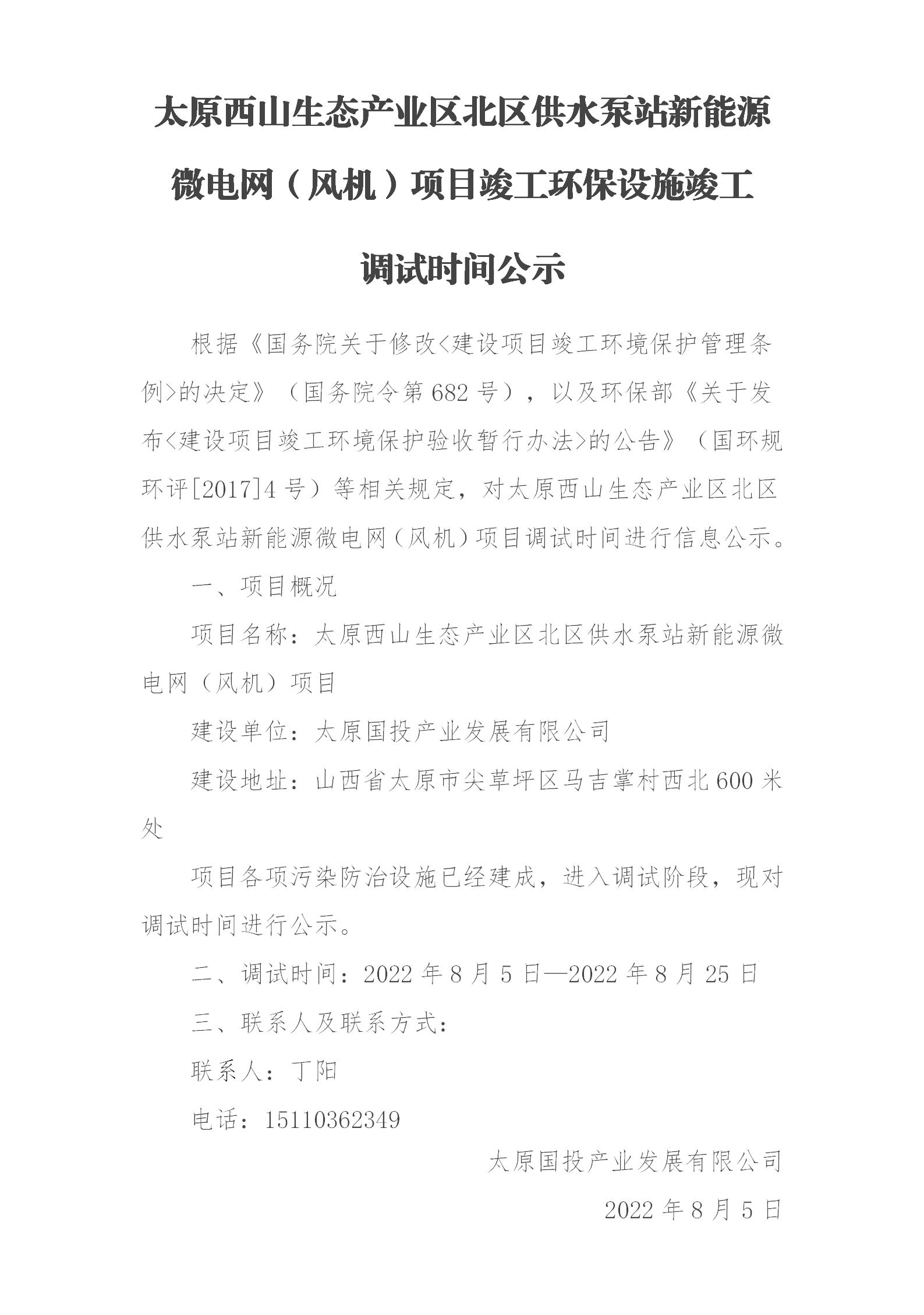 太原西山生態(tài)產(chǎn)業(yè)區(qū)北區(qū)供水泵站新能源微電網(wǎng)(風(fēng)機)項目調(diào)試公示