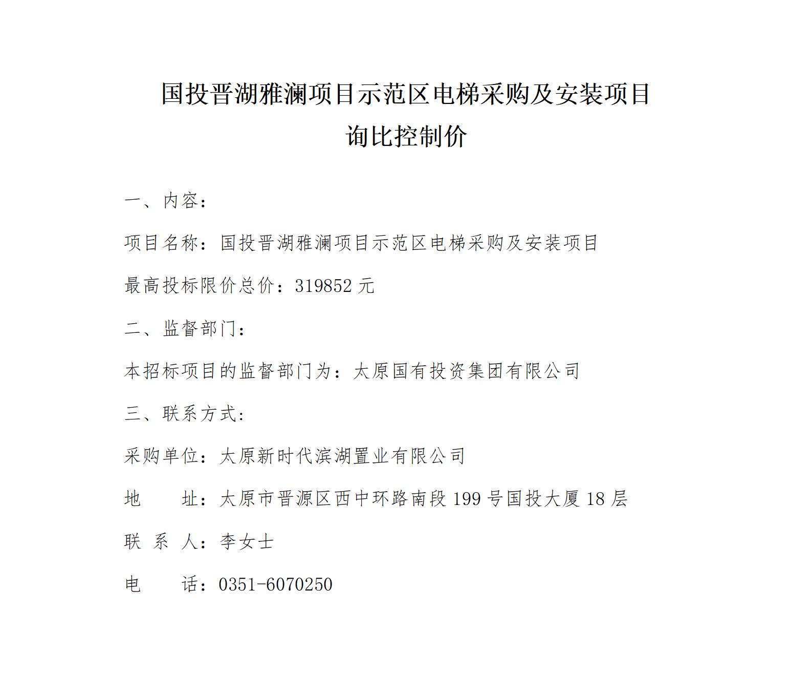 晉湖雅瀾項(xiàng)目示范區(qū)電梯采購(gòu)及安裝項(xiàng)目詢比控制價(jià)