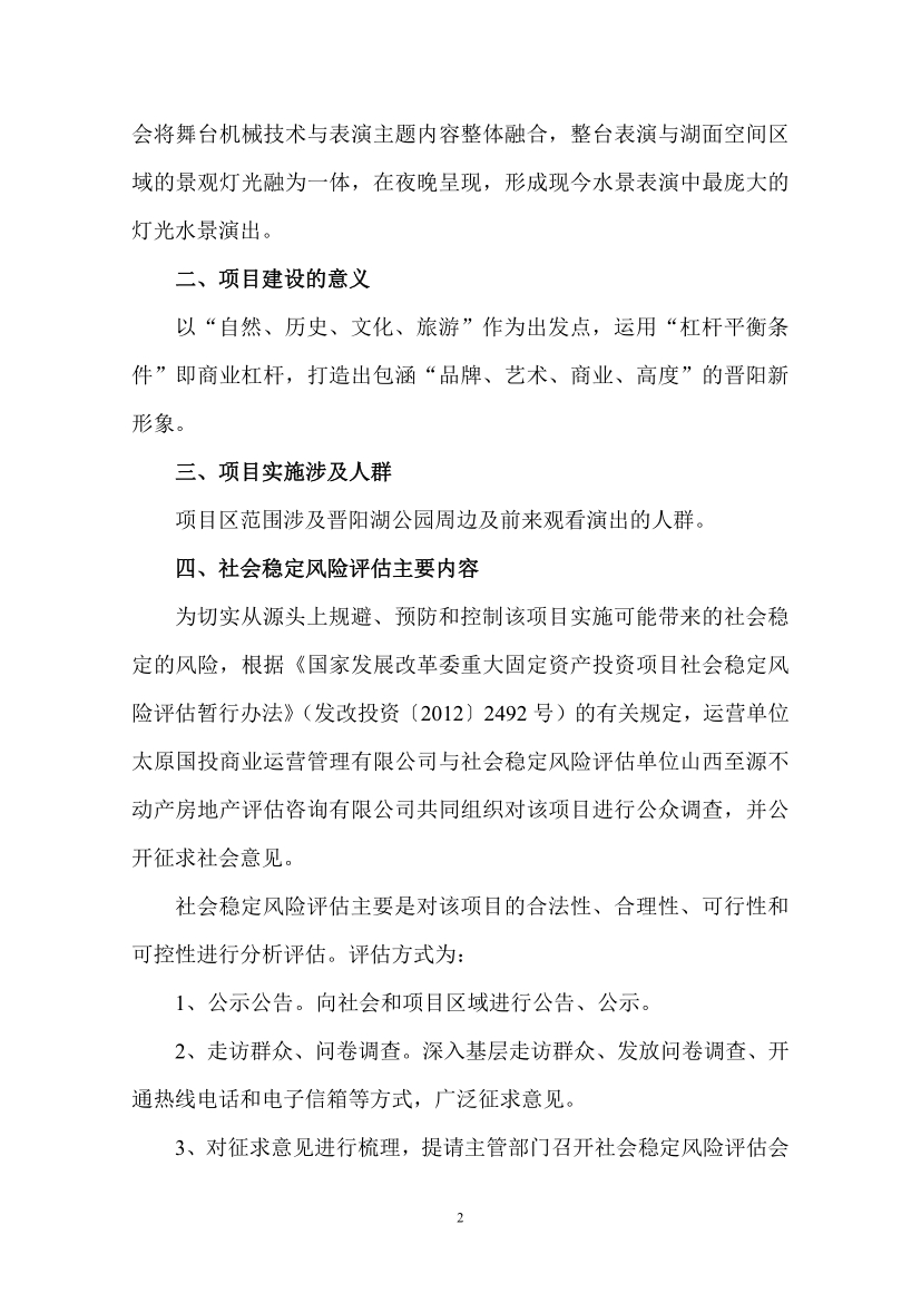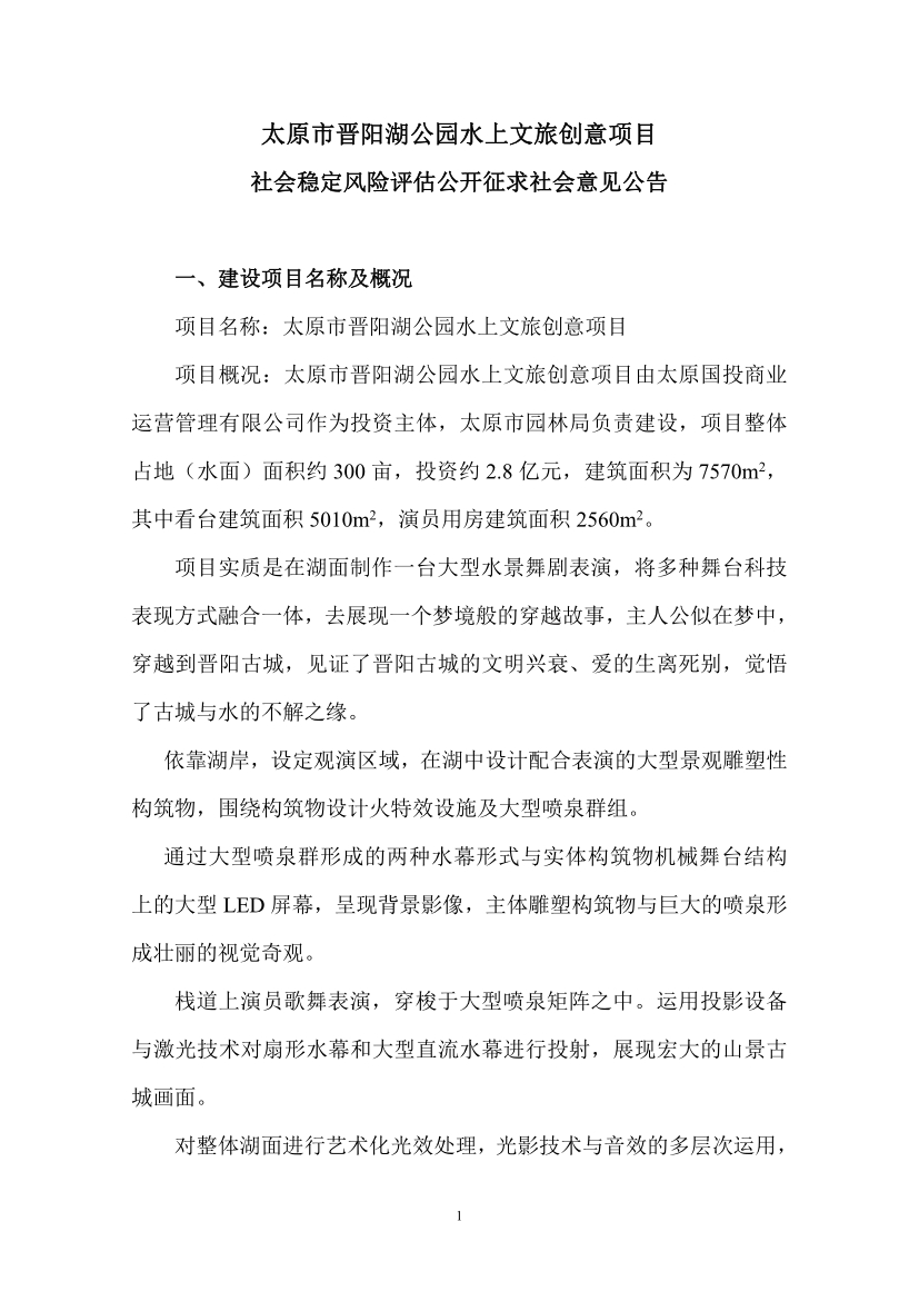 太原市晉陽湖公園水上文旅創(chuàng)意項目社會穩(wěn)定風險評估公開征求社會意見公告