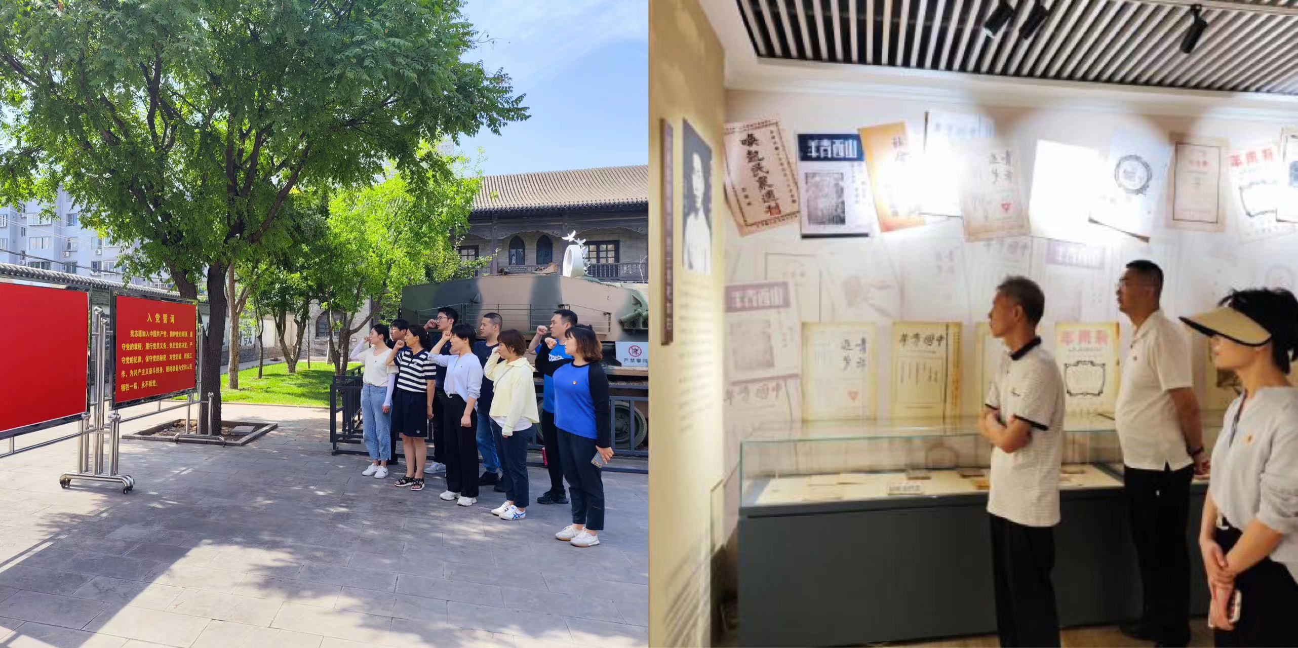 支部全體人員在拱極門集合出發(fā),先后參觀了國民師范舊址、八路軍駐晉辦事處舊址紀(jì)念館和犧盟會(huì)太原市委舊址,全程徒步約3公里?!拔抑驹讣尤胫袊伯a(chǎn)黨,擁護(hù)黨的綱領(lǐng),遵守黨的章程...隨時(shí)為黨和人民犧牲一切,永不叛黨!”大家在黨旗前莊嚴(yán)宣誓,時(shí)刻提醒自己要永葆對(duì)黨忠誠的政治品格,要時(shí)刻堅(jiān)守忠誠的政治底色,踐初心、勇?lián)?dāng)、強(qiáng)作為。“團(tuán)結(jié)就是力量,團(tuán)結(jié)就是力量,這力量是鐵、這力量是鋼...” 紅歌鏗鏘有力,催人振奮。大家在兩個(gè)領(lǐng)唱員帶領(lǐng)下在革命舊址唱紅歌集體重溫革命傳統(tǒng),復(fù)習(xí)紅色文化,為黨的生日獻(xiàn)禮。打卡紅色基地,重溫紅色歷史、緬懷革命先烈,通過一幅幅珍貴的歷史照片、一件件珍貴的抗戰(zhàn)文物,再現(xiàn)老一輩無產(chǎn)階級(jí)革命家的英雄事跡和豐功偉績(jī)。