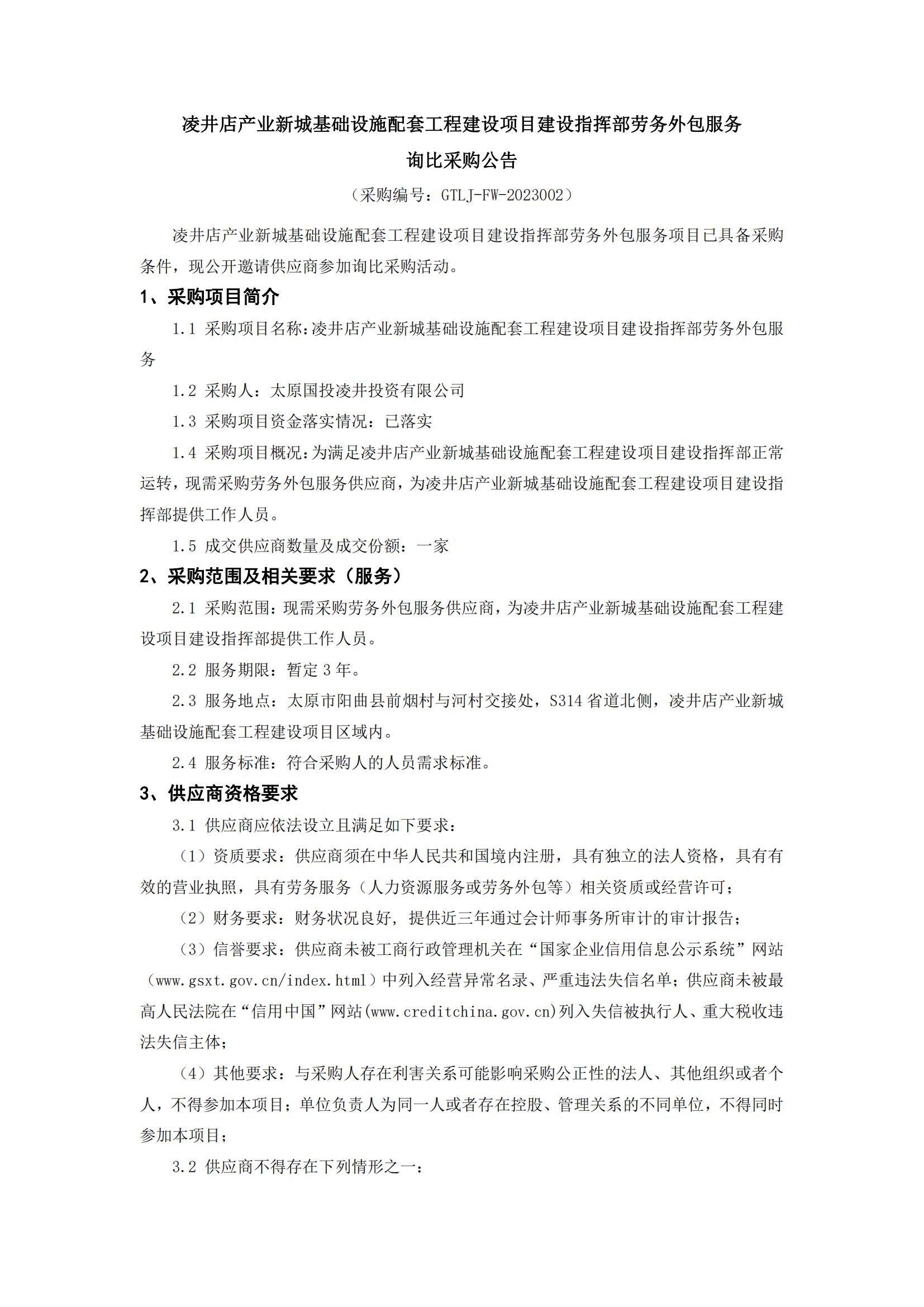 凌井店產(chǎn)業(yè)新城基礎(chǔ)設(shè)施配套工程建設(shè)項目建設(shè)指揮部勞務(wù)外包服務(wù) 詢比采購公告