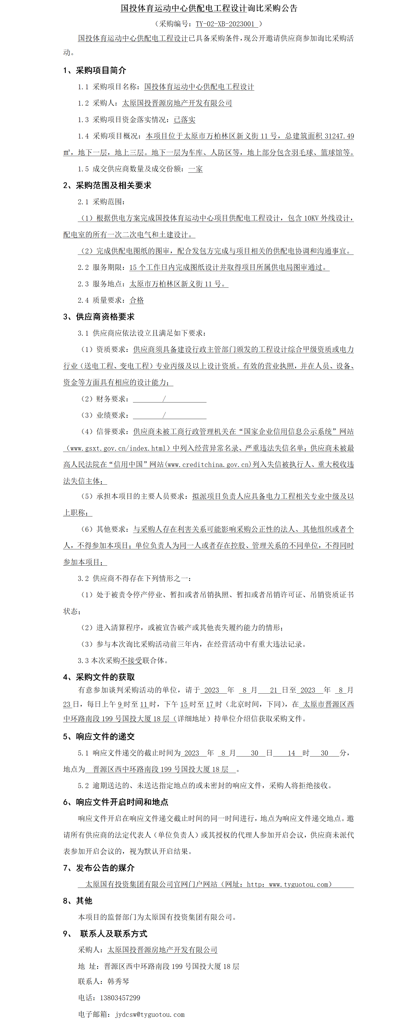 國投體育運動中心供配電工程設(shè)計詢比采購公告