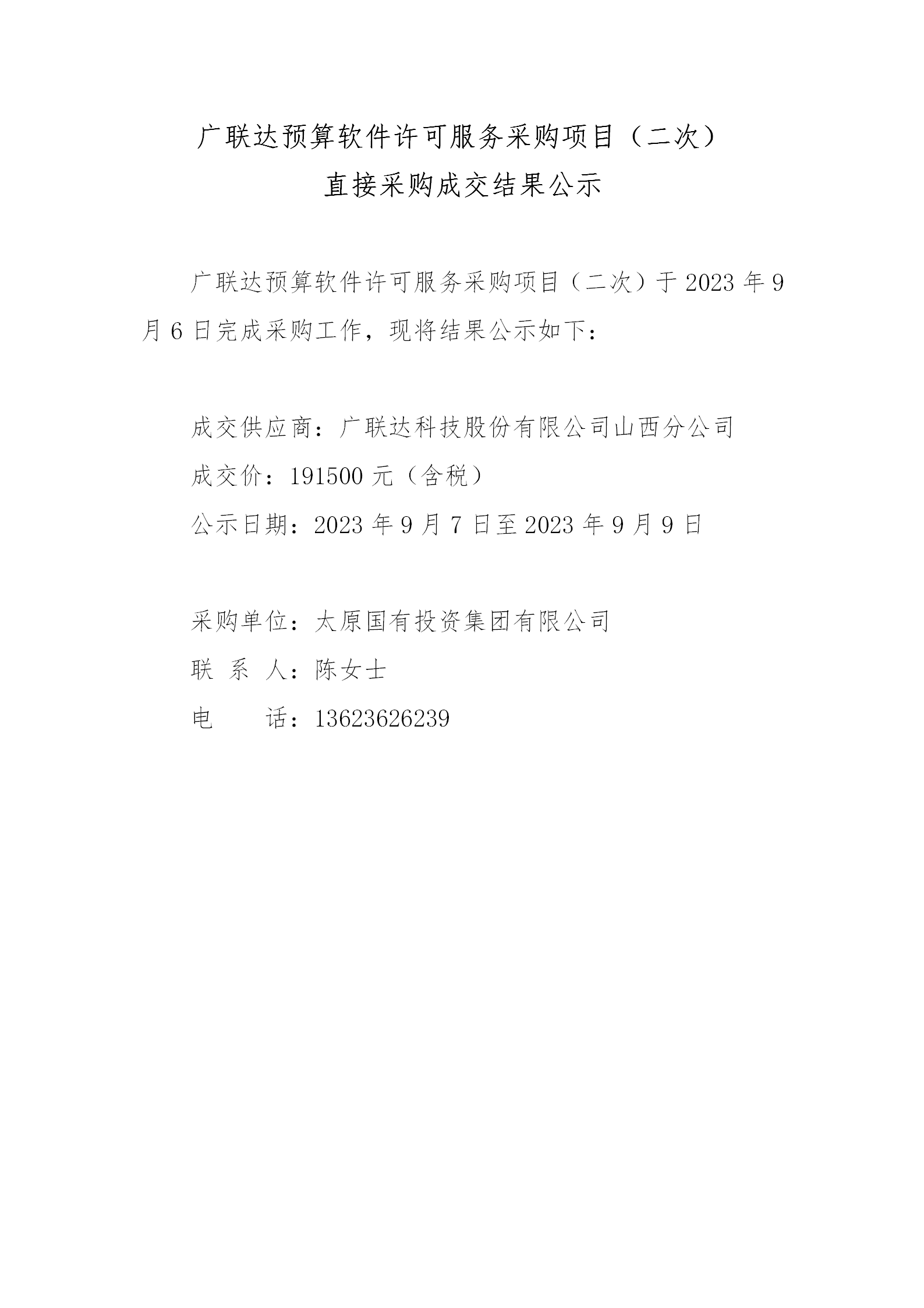 廣聯(lián)達預(yù)算軟件許可服務(wù)采購項目(二次)直接采購成交結(jié)果公示