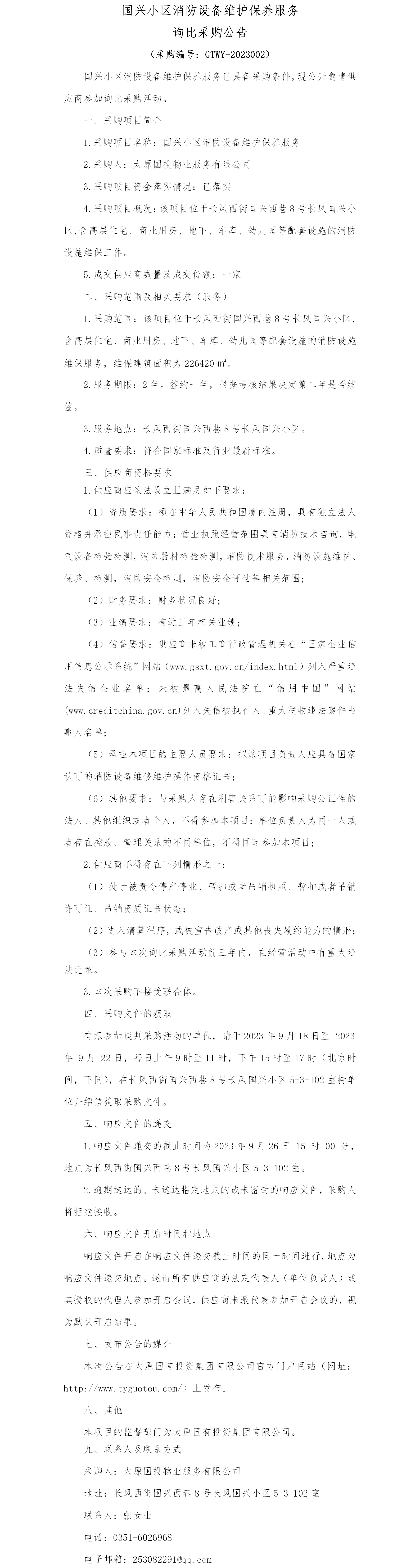 國興小區(qū)消防設(shè)備維護保養(yǎng)服務(wù)詢比采購公告