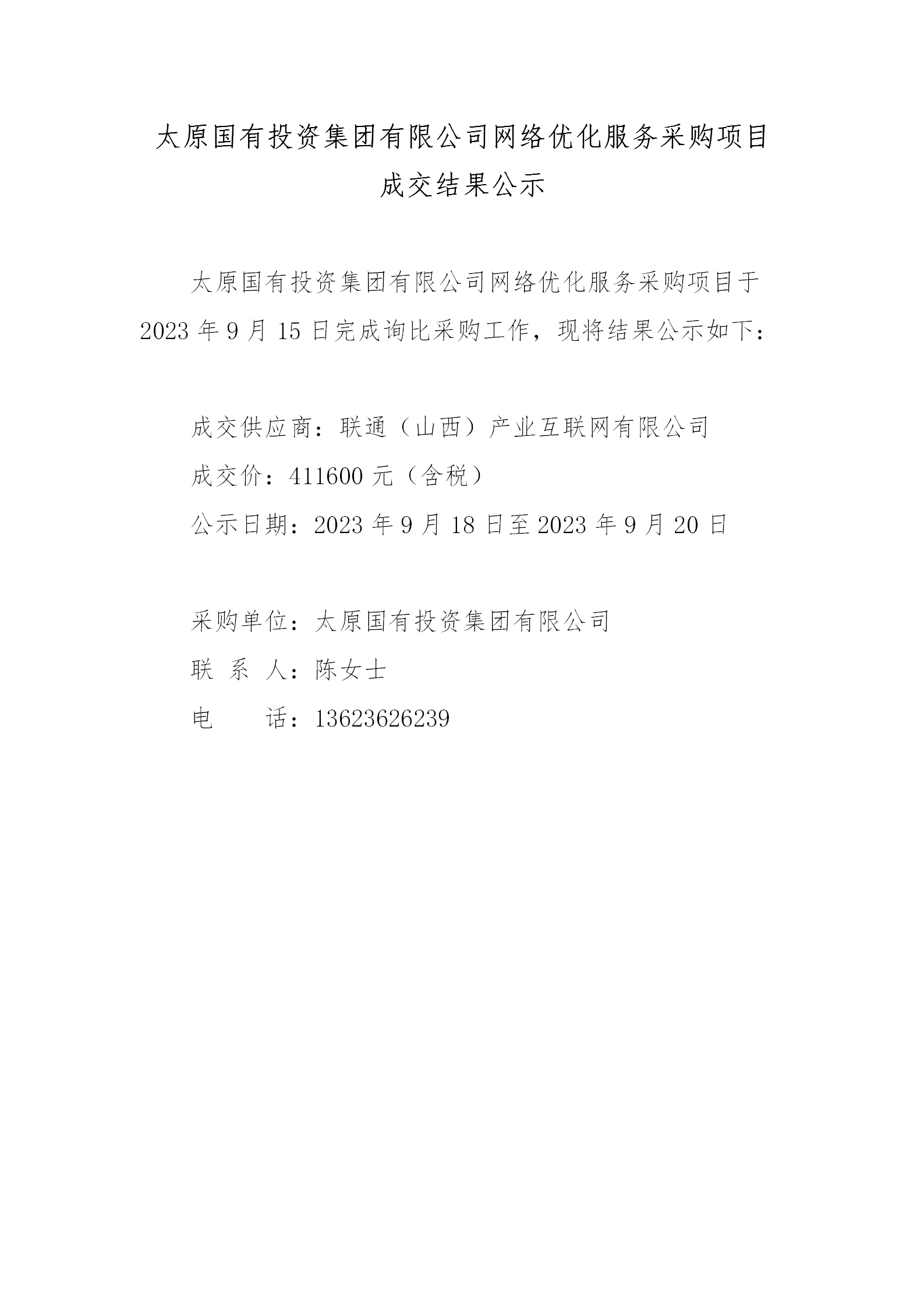 網(wǎng)絡優(yōu)化服務采購項目成交結(jié)果公示