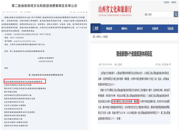 根據(jù)山西省文化和旅游廳辦公室《關(guān)于開展第二批省級(jí)夜間文化和旅游消費(fèi)集聚區(qū)評(píng)選有關(guān)工作的通知》、《關(guān)于開展第三批山西省省級(jí)旅游休閑街區(qū)評(píng)選有關(guān)工作的通知》要求,經(jīng)市級(jí)文旅部門審核推薦、省文旅廳組織專家進(jìn)行評(píng)審,我公司申報(bào)的《太原市晉源區(qū)晉陽湖夜間文化和旅游消費(fèi)集聚區(qū)》、《太原市晉源區(qū)太原王府井奧萊?晉陽里》成功獲選。