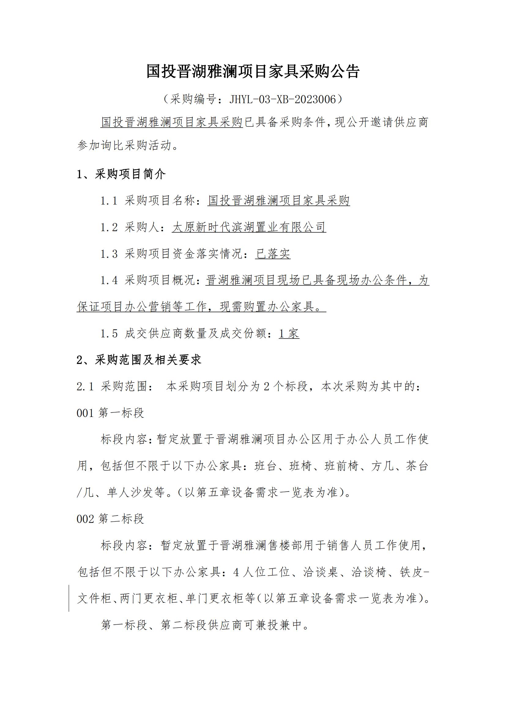 太原國(guó)投新時(shí)代濱湖置業(yè)有限公司家具采購詢比公告