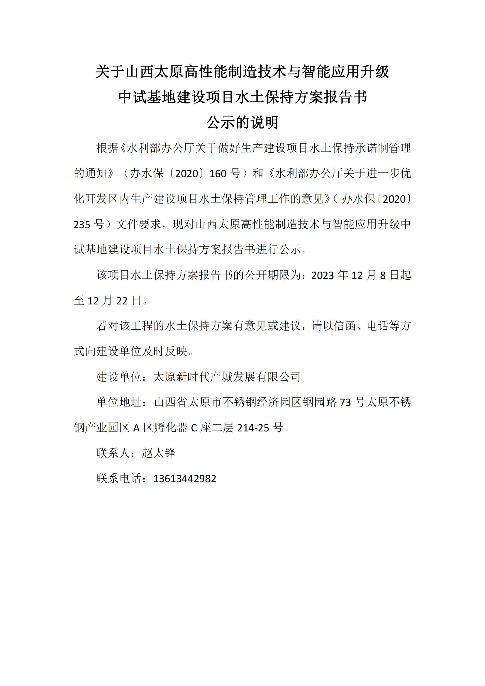 山西太原高性能制造技術(shù)與智能應(yīng)用升級(jí) 中試基地建設(shè)項(xiàng)目水土保持方案報(bào)告書公示