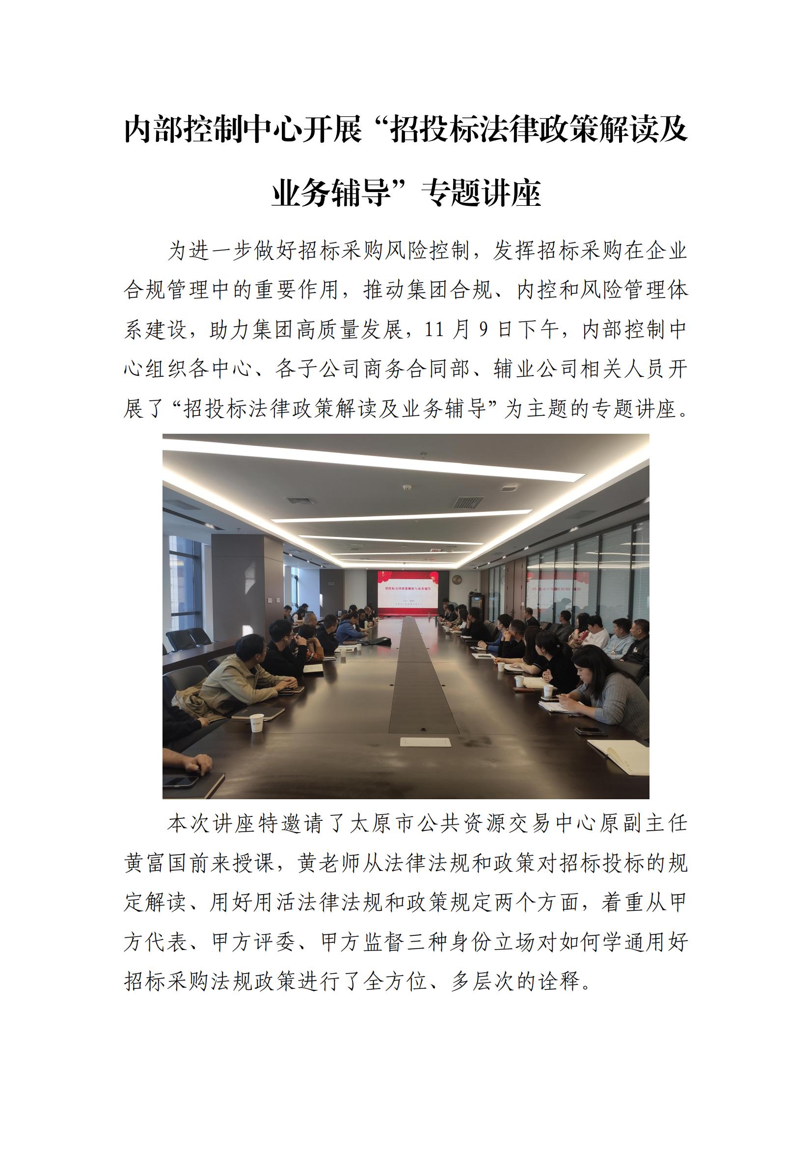 內(nèi)部控制中心開展“招投標法律政策解讀及業(yè)務(wù)輔導(dǎo)”專題講座