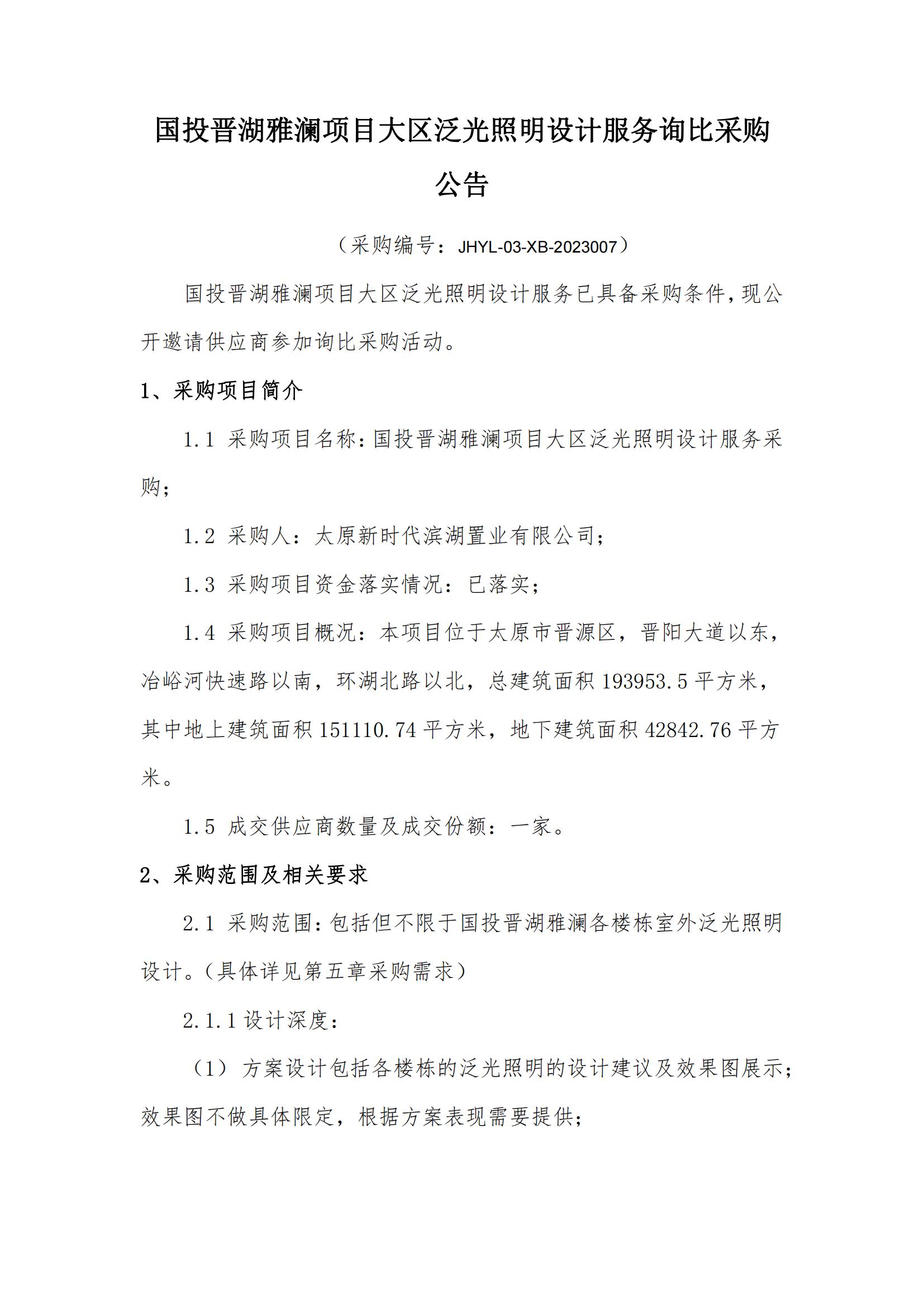 國投晉湖雅瀾項目大區(qū)泛光照明設(shè)計服務(wù)詢比采購公告