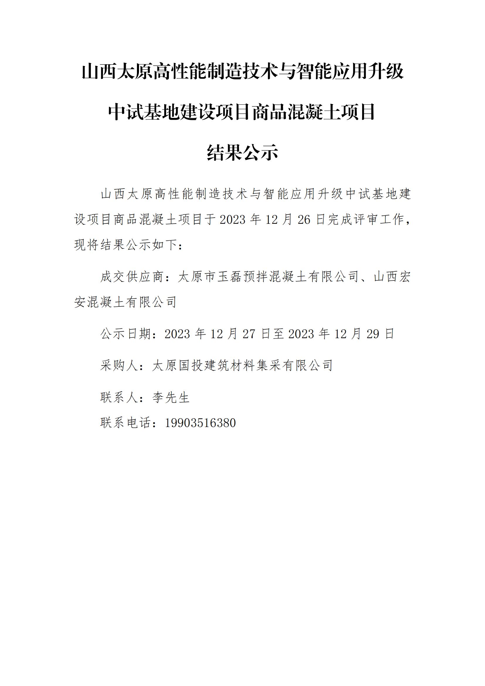 山西太原高性能制造技術(shù)與智能應(yīng)用升級(jí)中試基地建設(shè)項(xiàng)目商品混凝土項(xiàng)目結(jié)果公示