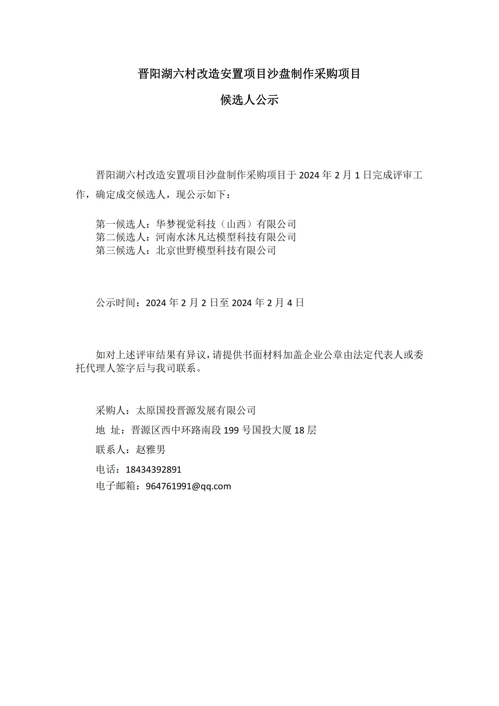 晉陽湖六村改造安置項(xiàng)目沙盤制作采購項(xiàng)目候選人公示
