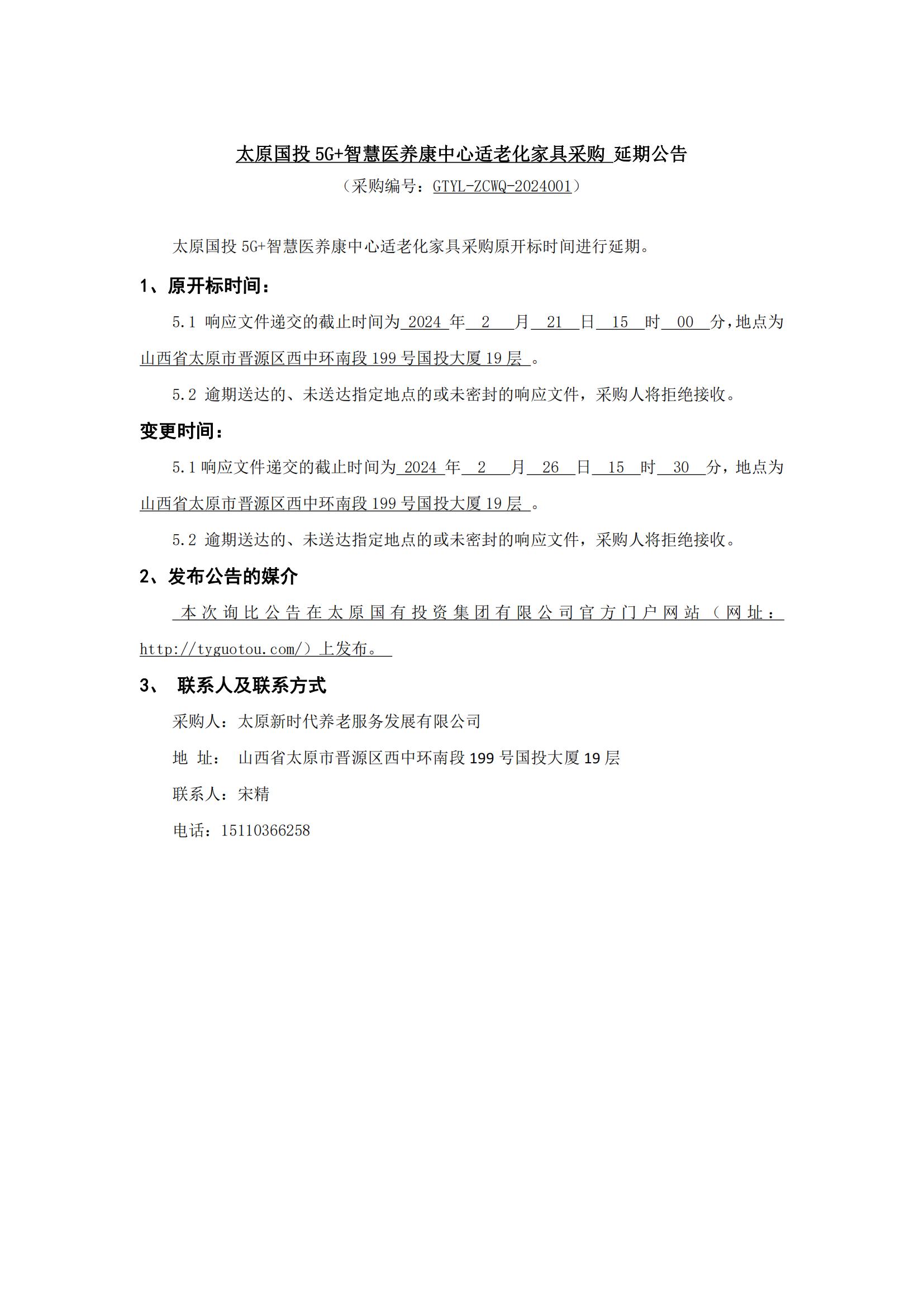太原國投5G+智慧醫(yī)養(yǎng)康中心適老化家具采購 延期公告