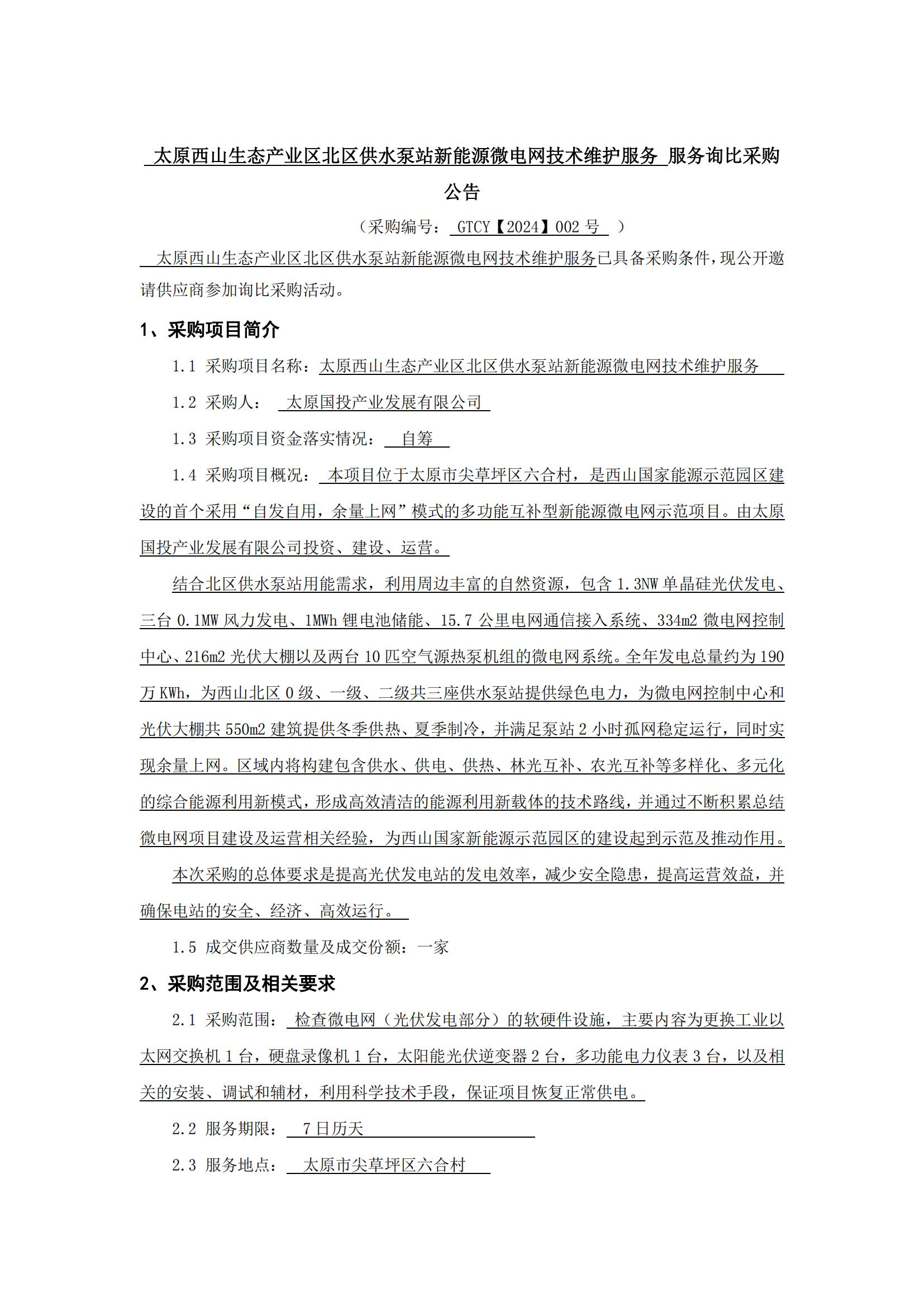 太原西山生態(tài)產(chǎn)業(yè)區(qū)北區(qū)供水泵站新能源微電網(wǎng)技術(shù)維護(hù)服務(wù)服務(wù)詢比采購公告