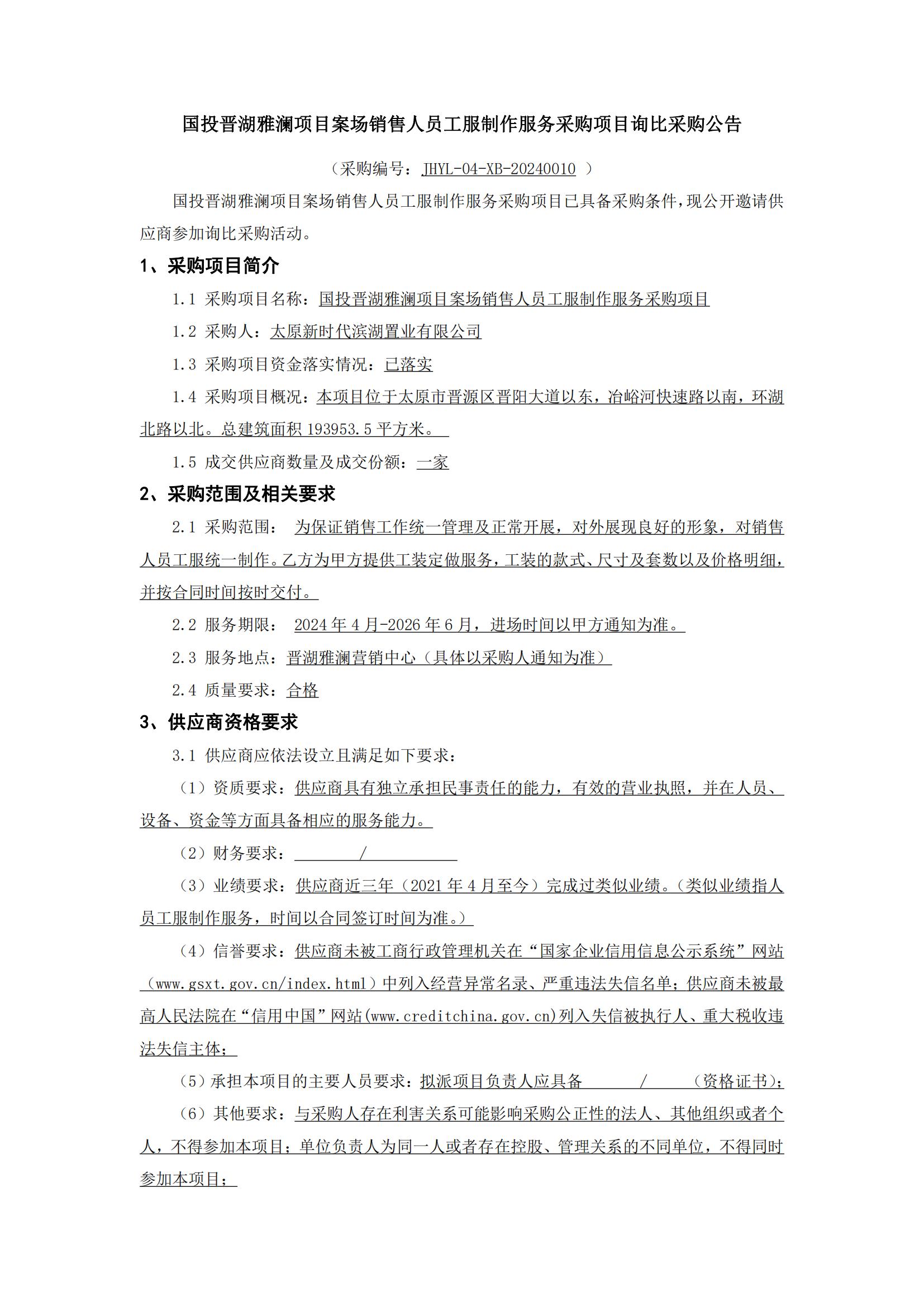 國投晉湖雅瀾項(xiàng)目案場銷售人員工服制作服務(wù)采購項(xiàng)目詢比采購公告