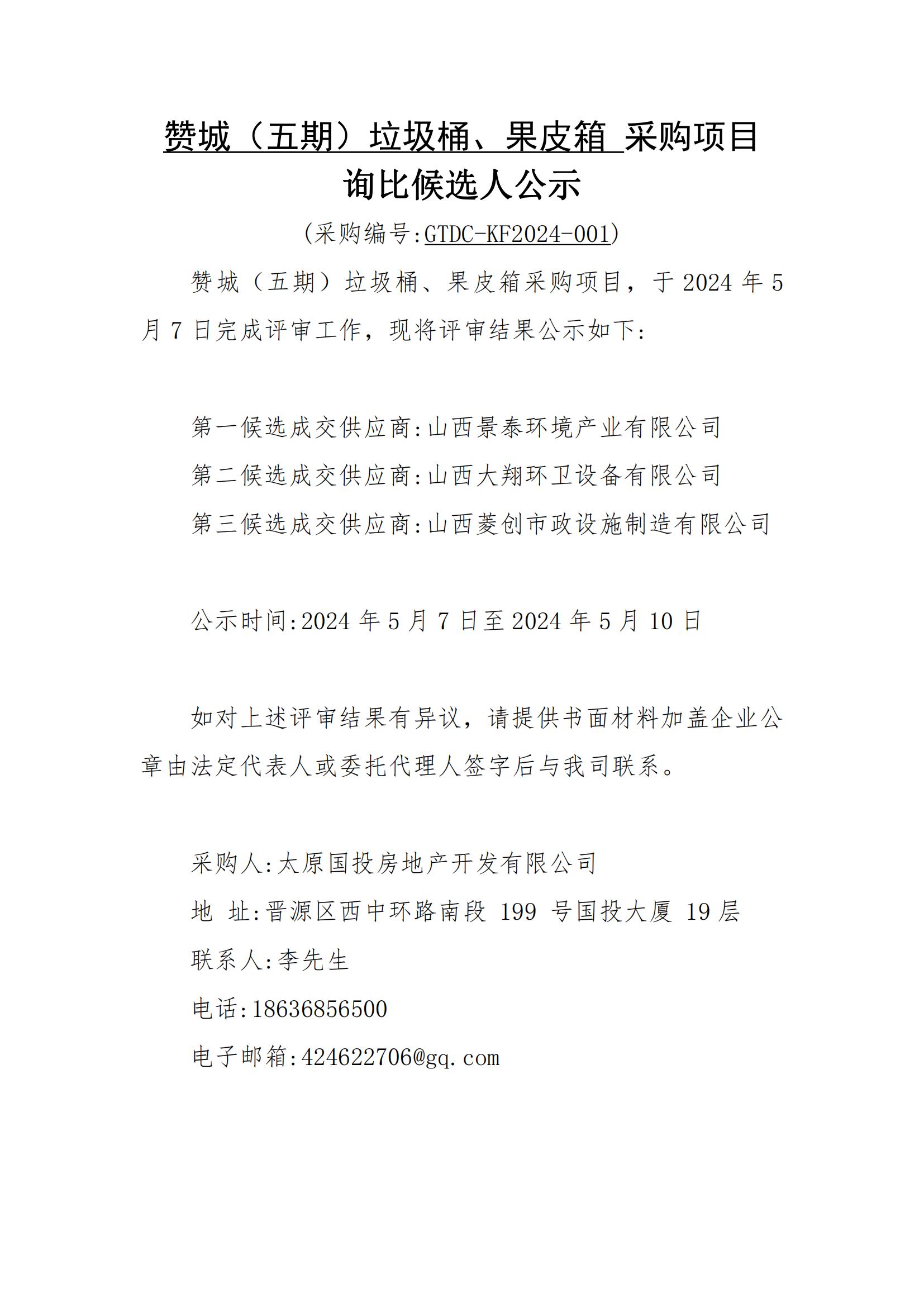 贊城五期垃圾桶、果皮箱采購項目詢比候選人公示