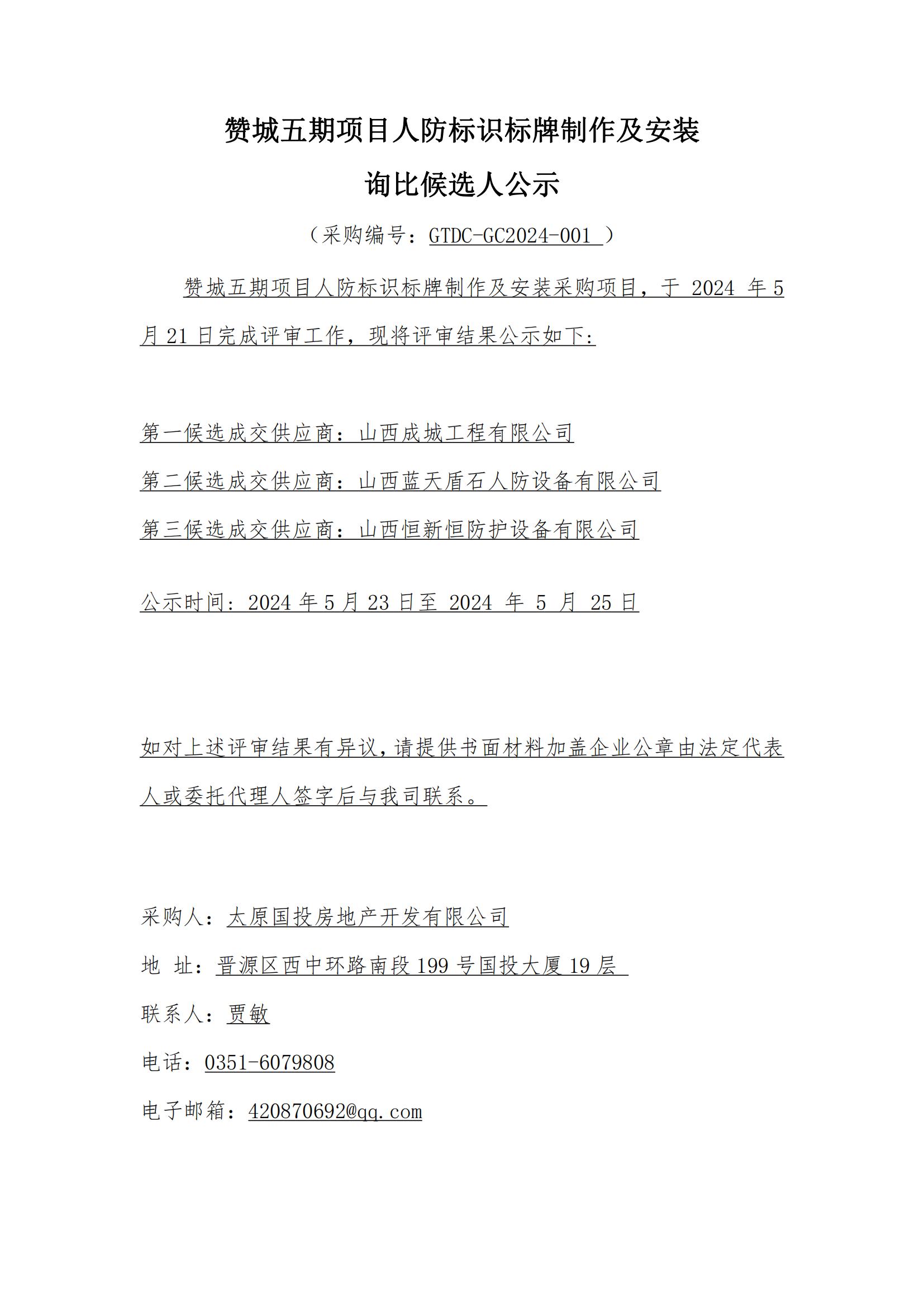 贊城五期項目人防標識標牌制作及安裝詢比候選人公示