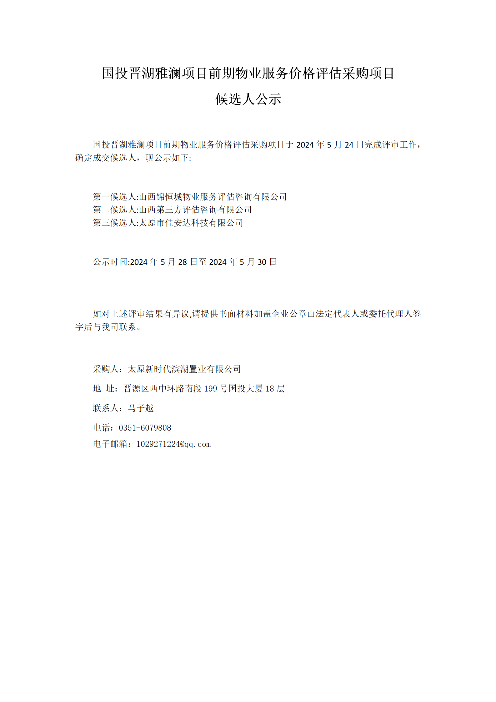 國(guó)投晉湖雅瀾項(xiàng)目前期物業(yè)服務(wù)價(jià)格評(píng)估采購(gòu)項(xiàng)目候選人公示