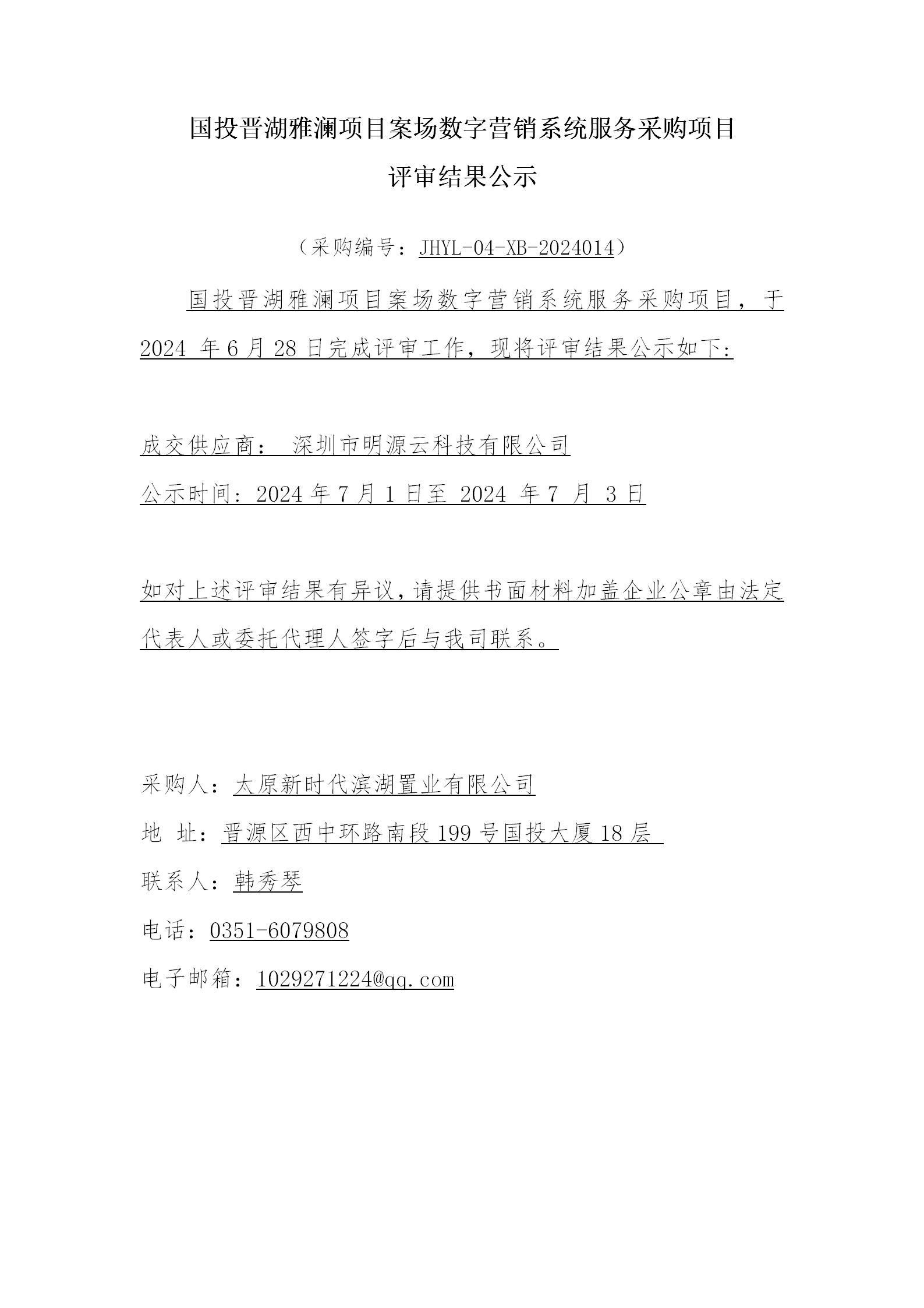 國投晉湖雅瀾項(xiàng)目案場(chǎng)數(shù)字營銷系統(tǒng)采購項(xiàng)目評(píng)審結(jié)果公示
