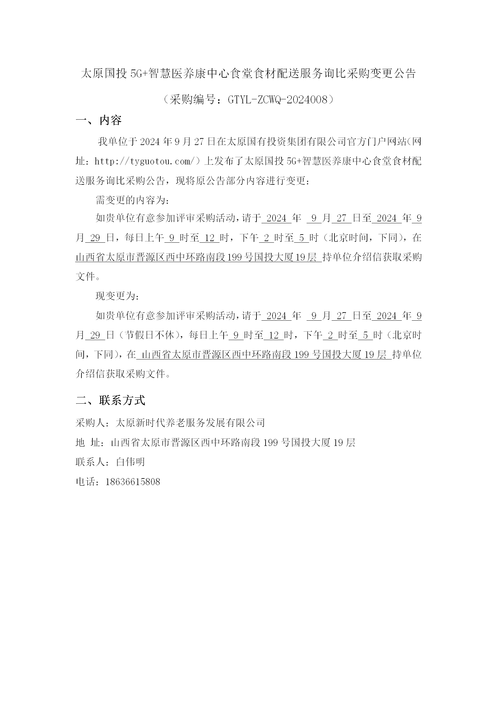 太原國(guó)投5G+智慧醫(yī)養(yǎng)康中心食堂食材配送服務(wù)詢比采購(gòu)變更公告