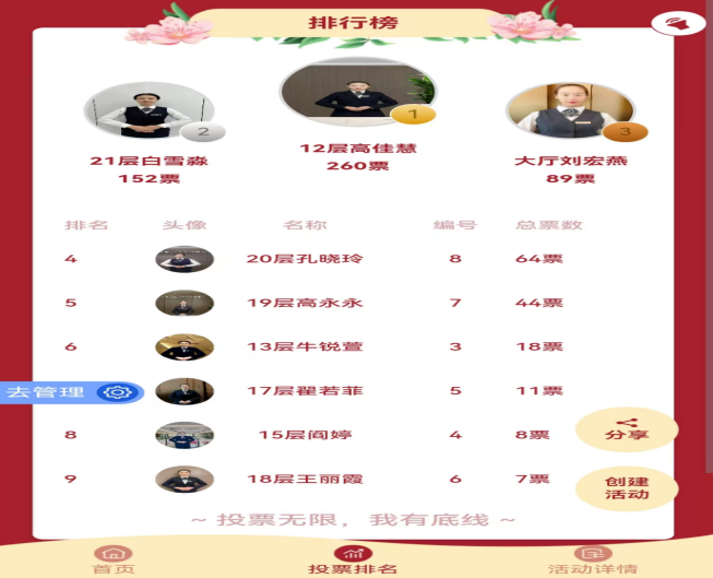 國投大廈客戶服務(wù)部在日常工作中,通過組織開展文明禮儀、業(yè)務(wù)技能專題培訓(xùn)強化素養(yǎng)提升。活動啟動后,客服工作人員掀起了爭先創(chuàng)優(yōu)的創(chuàng)建熱潮,廣大客戶積極參與,為心目中的“服務(wù)標(biāo)兵”,投上了自己寶貴的一票。
