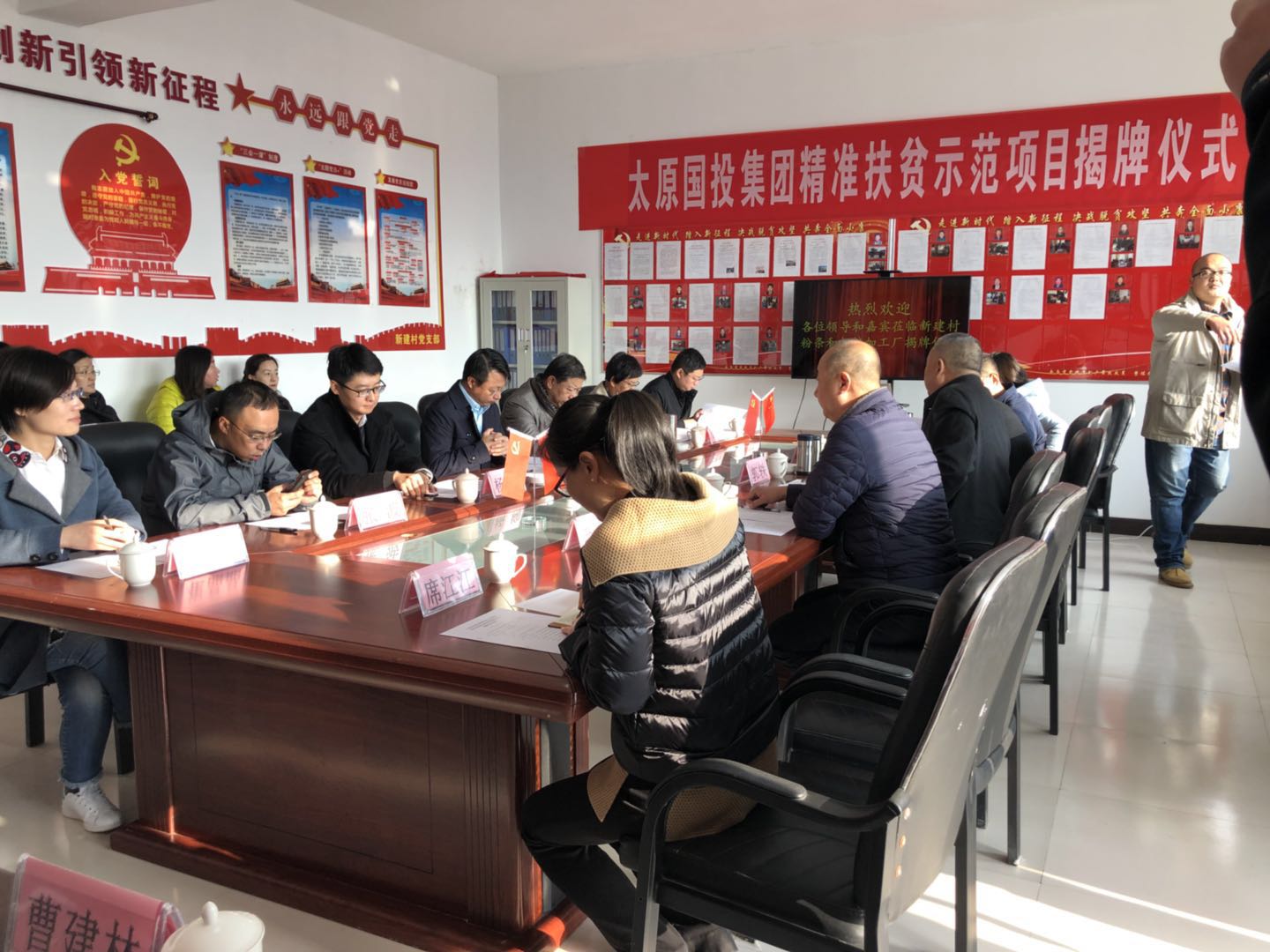在揭牌儀式上,集團(tuán)黨委馮澤亭書記代表公司致辭,他指出太原國投集團(tuán)充分發(fā)揮國有企業(yè)在精準(zhǔn)扶貧中的社會(huì)擔(dān)當(dāng),堅(jiān)持扶真貧、真扶貧,積極主動(dòng)參與脫貧攻堅(jiān)工作,抓好各項(xiàng)任務(wù)落實(shí),堅(jiān)決打好脫貧攻堅(jiān)戰(zhàn)。董事長蘭衛(wèi)軍同志與太原市建設(shè)工程質(zhì)量監(jiān)督站等相關(guān)領(lǐng)導(dǎo)進(jìn)行了揭牌儀式。