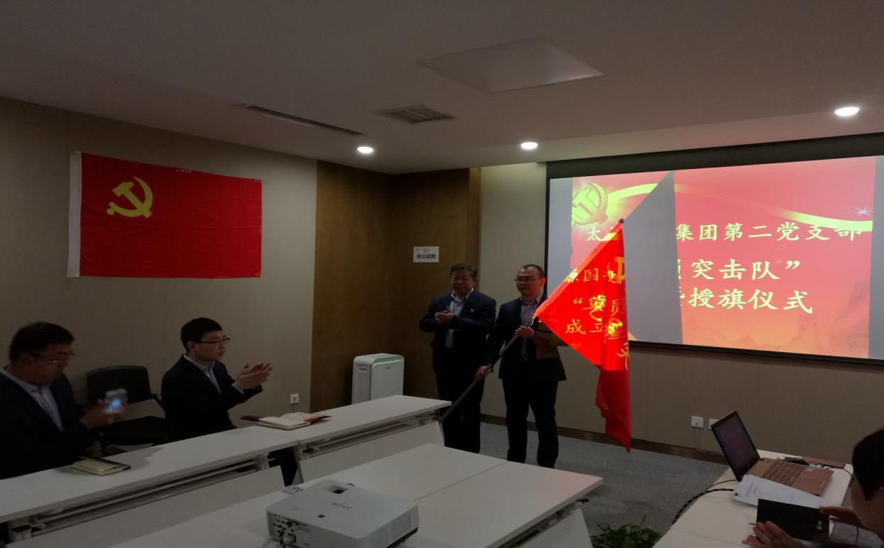 成立儀式在全體人員合唱國(guó)歌的環(huán)節(jié)中拉開(kāi)帷幕,接著由黨委委員文劍鋒宣讀《關(guān)于成立太原國(guó)投集團(tuán)第二黨支部黨員突擊隊(duì)的通知》,由第二黨支部部分黨員和公司業(yè)務(wù)骨干組成,成員有隊(duì)長(zhǎng)張耀偉、指導(dǎo)員王棟、隊(duì)員王琳、韓翠翠、武士杰、郭亞慧、閻劍、郭琦、趙艷、趙麗明、張琦、邊疆共計(jì)12名。在嚴(yán)肅莊重的氛圍下,集團(tuán)黨委書(shū)記馮澤亭同志向突擊隊(duì)隊(duì)長(zhǎng)張耀偉同志授旗。